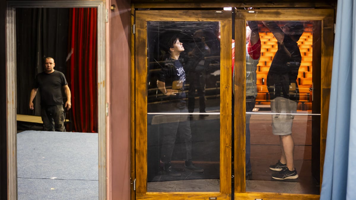 The exhibition of Lah’s photos from the 59th Maribor Theatre Festival in 2024 brings an intimate insight into the theatre world – from the preparations backstage to rehearsals and scenes on stage. The images reveal the quiet tension during preparations, playful dynamics between the actors and the crews and minute moments of reflection and concentration before rehearsals. Each photo carries the atmosphere of time and space – from the clothes hangers laden with costumes waiting for people to wear them to the building of scenography and pensive, focused or laughing faces of the performers. His images tell the story of how theatre lives outside the spotlight.