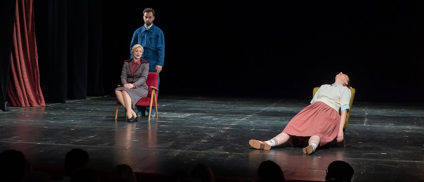 Predstava spretno lovi ravnotežje med minimalistično scenografijo ter simpatično tipskimi kostumi in namensko pretirano igro. Vsi člani zasedbe, ki jo sestavljajo Jadranka Đokić, Lana Meniga, Melody Martišković, Marko Makovičić, Luka Knez, Lara Nekić, Vid Ćosić, Marin Stević, Alma Prica, Ivan Colarić, Andrej Drenski in Antonio Mrzlić ter statista Andrej Drenski in Patrik Sečen, spretno in po principu more is more zgradijo like, ki so v vsaki kretnji ali obrazni mimiki potencirani ter jasno karakterizirani, pri čemer jih odlikuje predvsem izvrsta telesna komika.